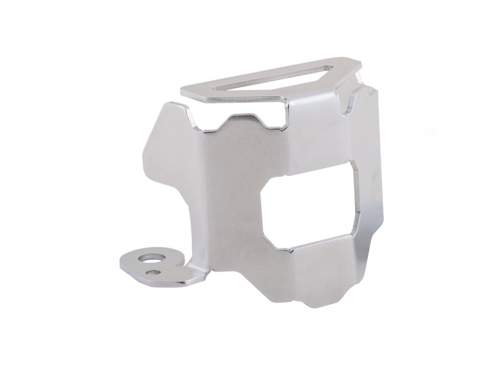 Primárně slouží k ochraně citlivé nádobky brzdové kapaliny před drobnými nárazy, poškrábáním nebo jiným poškozením, které by mohlo nastat během jízdy nebo při manipulaci s motocyklem. Je vyroben z vysoce kvalitní nerezové oceli, precizně řezané laserem, což zaručuje přesné padnutí, dlouhou životnost a vysokou odolnost vůči korozi. Tento doplněk nejenže zvyšuje bezpečnost a trvanlivost komponentu, ale také vizuálně vylepšuje oblast řidítek.