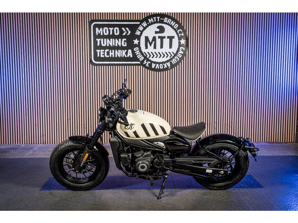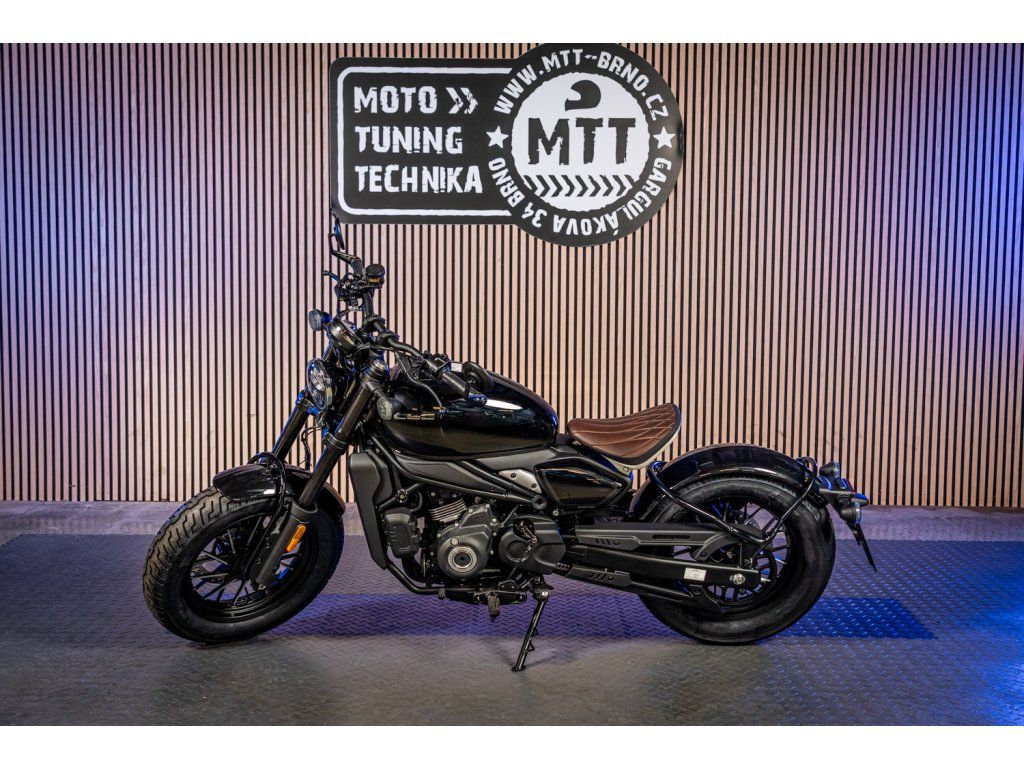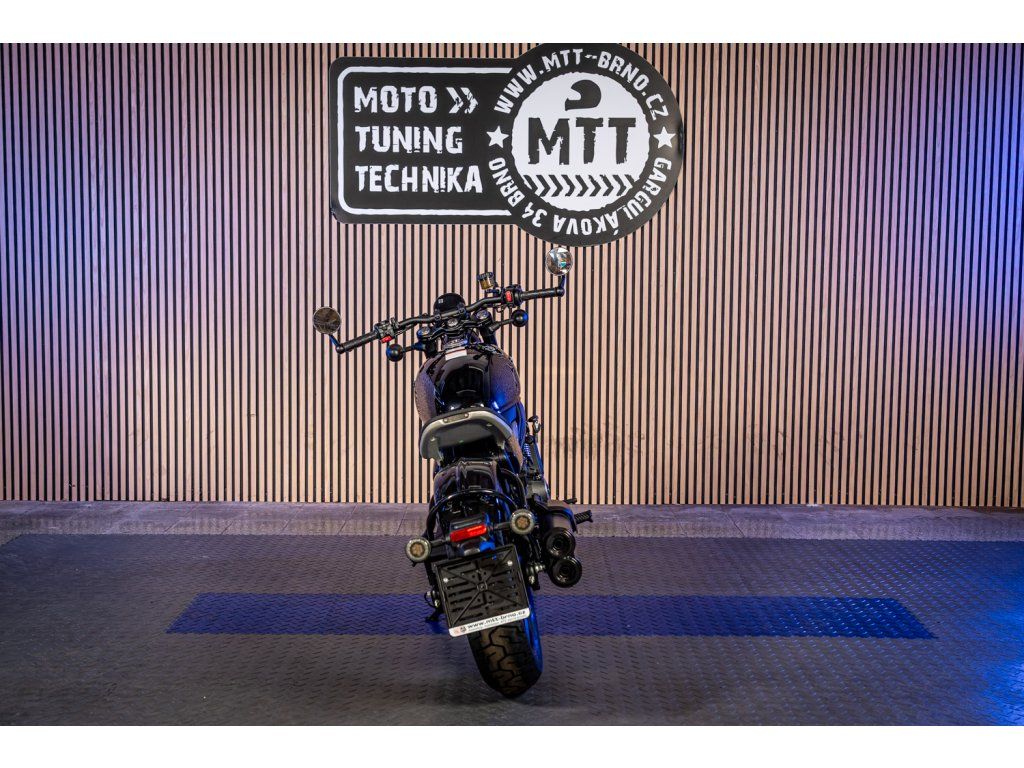 Nízké solo sedlo, zkrácený zadek, široká řídítka, tučný zadní plášť a parádní silueta „low & long“ – přesně to, co od poctivého bobbera čekáš. Každý detail, od tvaru nádrže po zpracování světel a krytů, působí promyšleně a prémiově. Zaparkuješ a lidi se prostě otáčejí.