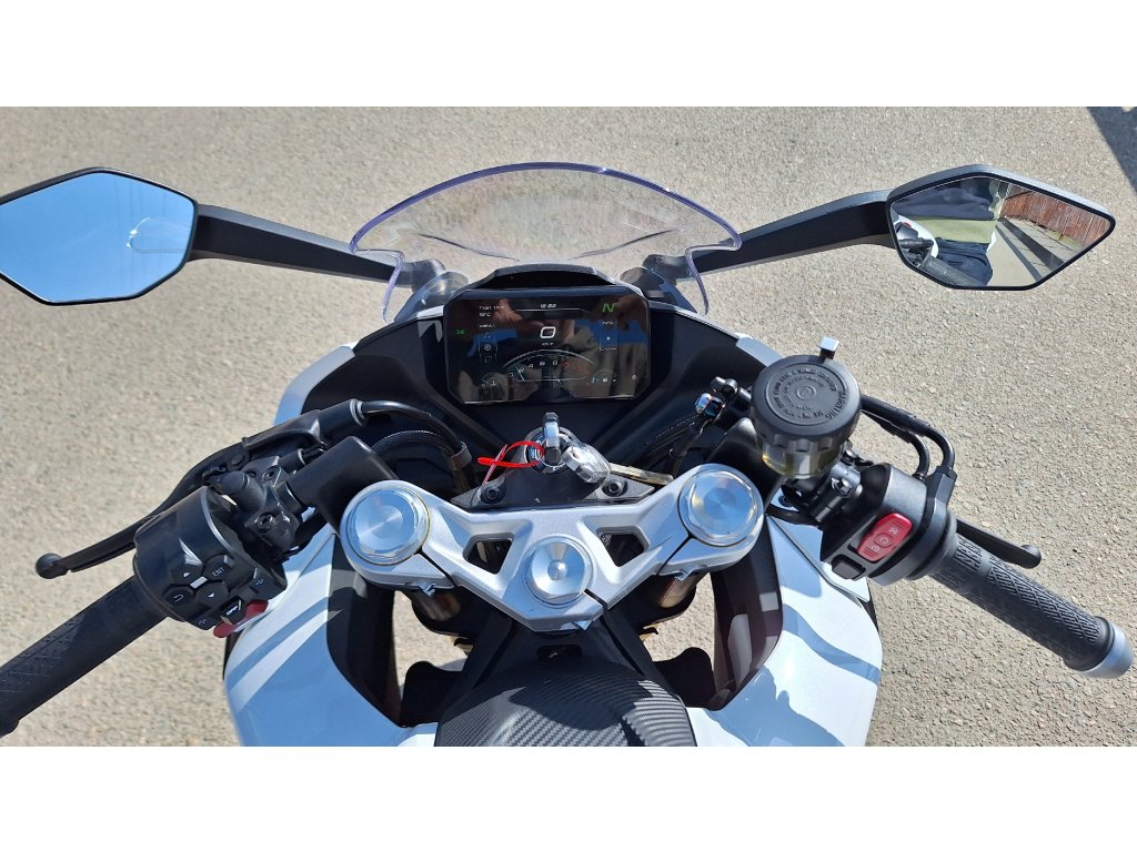 O přehledné zobrazení jízdních údajů se stará displej 5″, který neodvádí pozornost jezdce od soustředění na jízdu samotnou. jinak u takto sportovně zaměřeného stroje nemůže chybět nastavitelné upozornění na řazení.