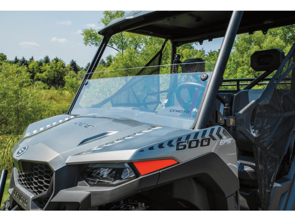 Vyrobeno z vysoce odolného polykarbonátu, zajišťuje vynikající pevnost a dlouhou životnost i v náročných podmínkách, aniž by omezovalo výhled. Jako součást originálního příslušenství CFMOTO garantuje perfektní padnutí a snadnou montáž. Je ideální volbou pro ty, kteří využívají UTV pro práci v terénu nebo pro rekreační jízdy a chtějí si užít jízdu s větší ochranou a pohodlím.